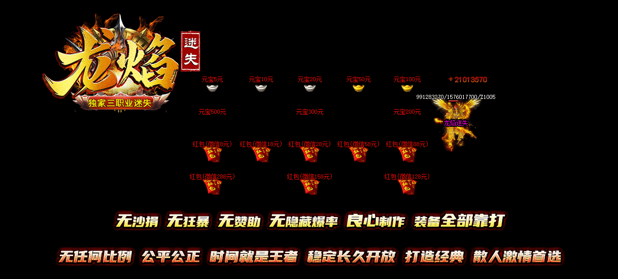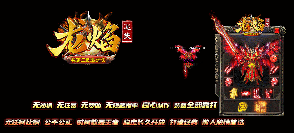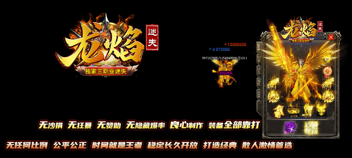 承诺:永不关爆率.所有终极装备全部靠打怪获得!